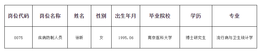 根据《2025年苏州市卫生健康系统长期公开招聘博士研究生专业技术人才公告》,经过面试、体检和考核合格,拟录用以下1名同志,现公示如下: